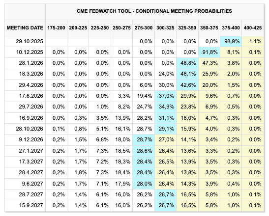 Rahoitusmarkkinat toimivat tällä viikolla poikkeuksellisessa tilanteessa, kun hallituksen sulku on keskeyttänyt suuren osan talousdatan julkaisuista, mikä on lisännyt yksittäisten raporttien painoarvoa. Tällä viikolla markkinoiden huomio kohdistuu erityisesti syyskuun kuluttajahintainflaation (CPI) lukuihin.