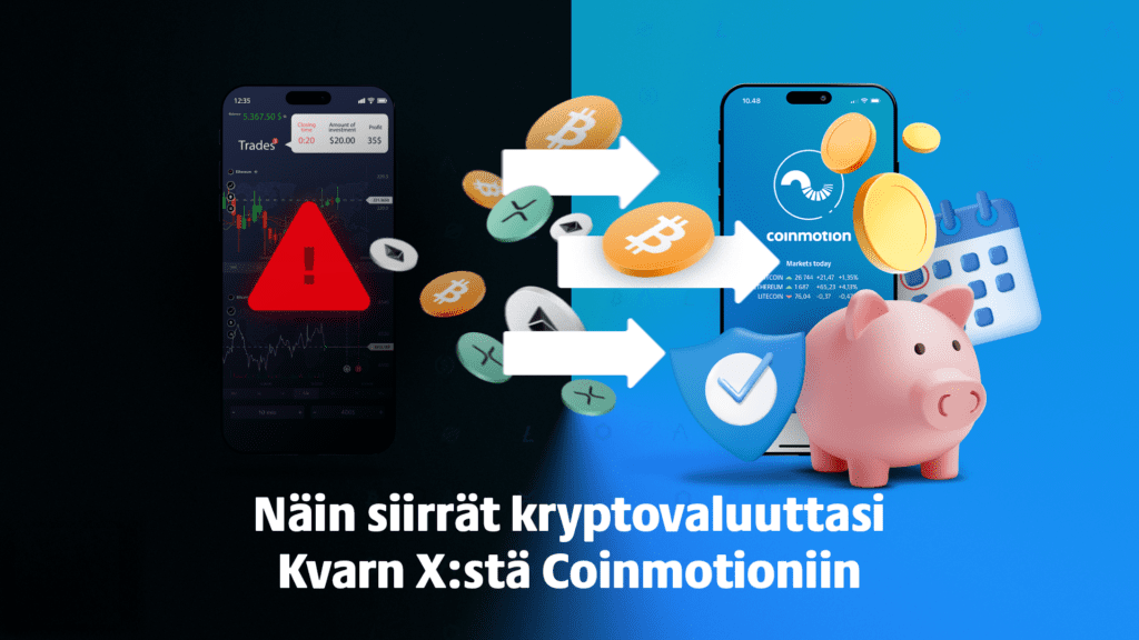 Muutokset käyttämiisi palveluihin voivat tuntua hankalilta, erityisesti kun kyse on omien sijoitusten hallinnoimisesta. Haluamme tehdä mahdollisesta siirtymisestä sinulle mahdollisimman helpon ja turvallisen, jonka vuoksi olemme luoneet tämän kattavan oppaan varojen siirtämiseen Kvarn X -palvelusta Coinmotioniin.