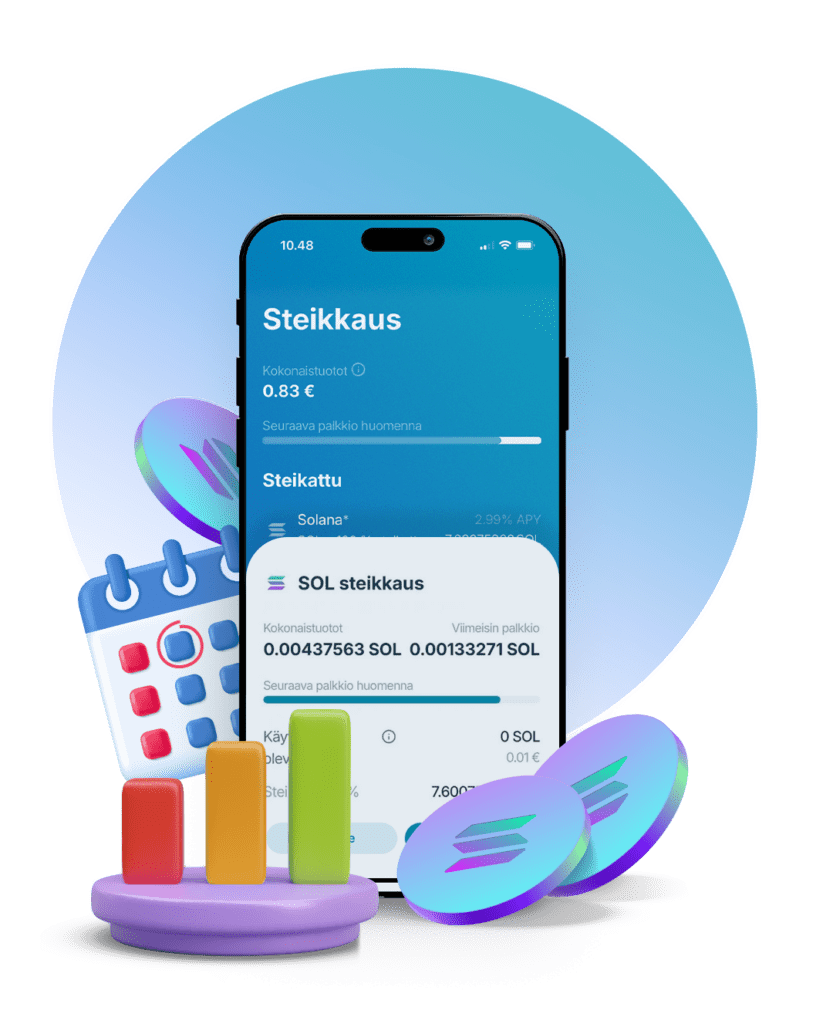 Steikkaamalla voit ansaita lisää kryptoja sen sijaan, että antaisit varojesi maata tilillä käyttämättöminä. Samalla edistät lohkoketjun turvallisuutta.
